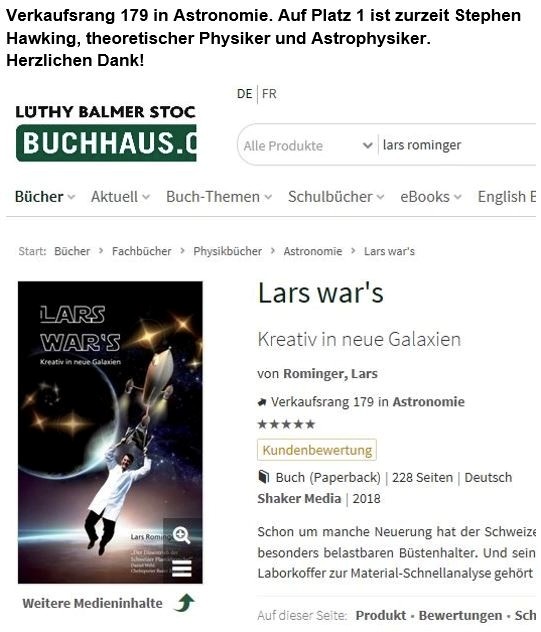 Machen auch Sie sich mit „Lars war’s“ auf Ihre persönliche Raumfahrt zu den Sternen, zu denen es Sie hinzieht! Aber schnallen Sie sich gut an …