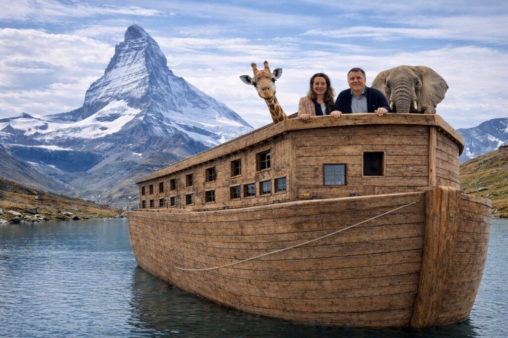 Abb. 4: Arche vor dem Matterhorn. Kein Mythos. Ein Hinweis. Was bewahrt wird, ist nicht das Äussere, sondern das was Bestand hat. (Genesis 6-9)