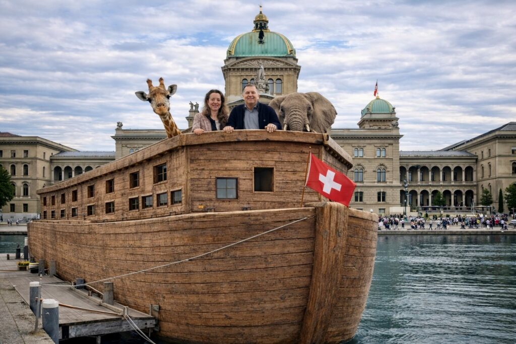 Abb. 5: Arche vor dem Bundeshaus. Nicht Macht bewahrt. Nicht Systeme. Nur das, was Wahrheit trägt, bleibt bestehen. (Genesis 6-9)