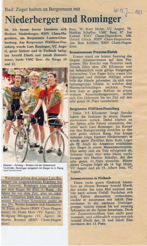 Abb. 2: Ein Rad-Zeitzeugnis vom 15. Juni 2025. Zuger Zeitung. „Niederberger und Rominger“.