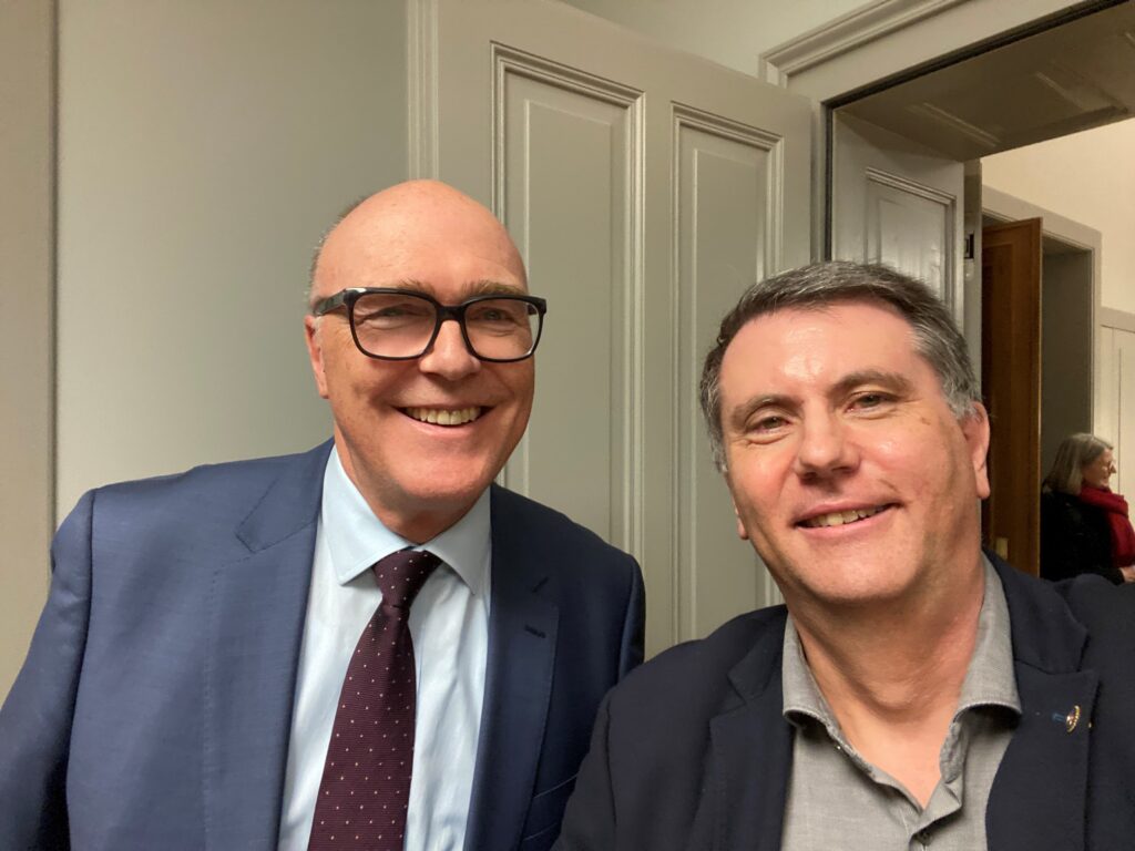 Abb.: Auf Einladung von Bundesrat Martin Pfister (rechts) im historischen Von-Wattenwyl-Haus in Bern: Lars Rominger (links) im persönlichen Austausch über Innovation, Unternehmertum und die Zukunft des Werkplatzes Schweiz, im traditionsreichen Rahmen politischer Dialogkultur.