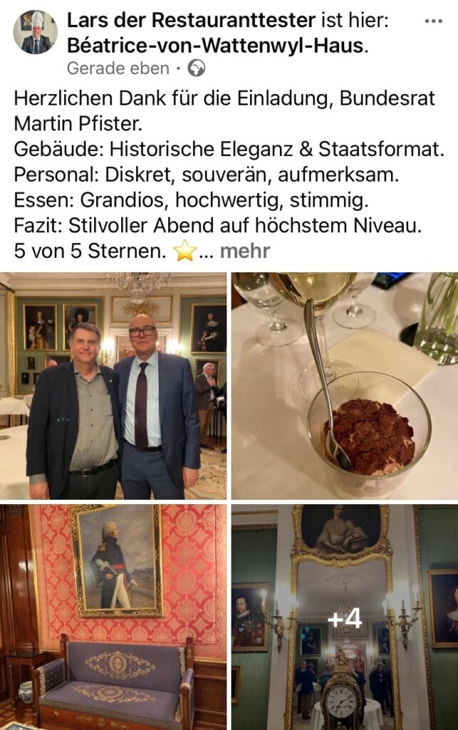 Bundesratsfeier in Baar. Alles Gute im Amt als Bundesrat, lieber Martin. Nebst brillanter Sachpolitik, Analytik und Teamarbeit überzeugst Du auch mit Kreativität und Humor*. Auch diese Qualitäten werden im Bundesrat einen entscheidenden Mehrwert generieren. Herzlichen Dank für die grossartig organisierte Bundesratsfeier. Auch als „Lars der Restauranttester“ war ich begeistert: 5 von 5 ⭐️☺️