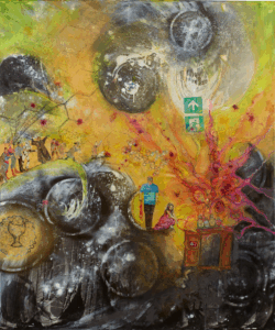 Das „Schrank-Gemälde“: Eine alchemistische Reise zwischen Licht und Schatten, Symbolen, Menschen und Energien, die sich in einer einzigen Szene verdichten.